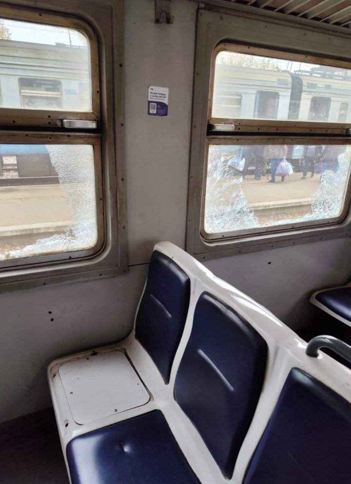 За її словами, внаслідок обстрілу пошкоджено лобові та бокові вікна салону вагона, є осколкове пошкодження обшивки кузова.