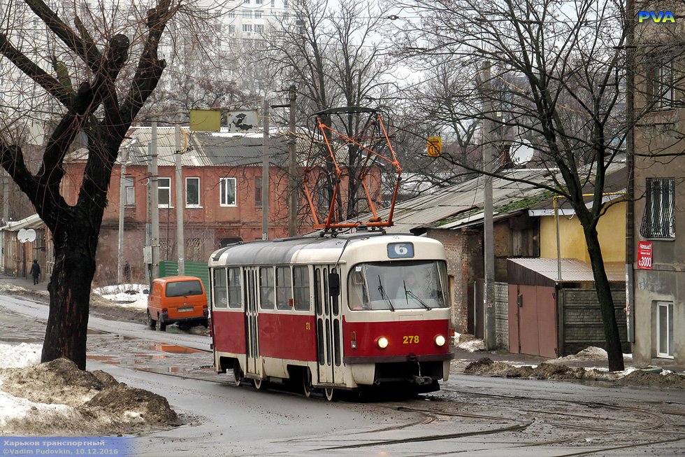 Tatra-T3SUCS #278 6-го маршрута в Рыбасовском переулке возле улицы Гольдберговской