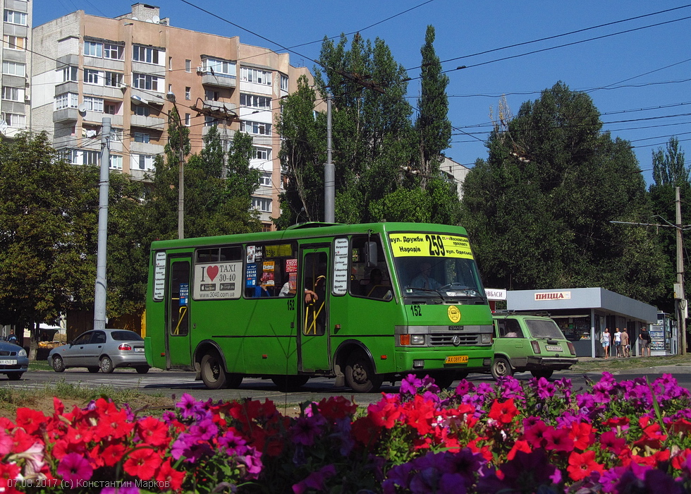 БАЗ-А079.14 гос.# AX0897AA 259-го маршрута на улице Гвардейцев-Широнинцев на перекрестке с улицей Героев Труда