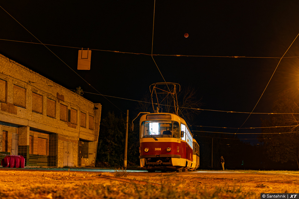 Tatra-T3SUCS #3008 27-го маршрута прибыл на конечную "Салтовская"