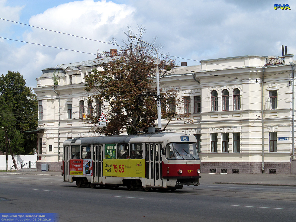 Tatra-T3SUCS #3067 6-го маршрута на Московском проспекте в районе улицы Леси Украинки