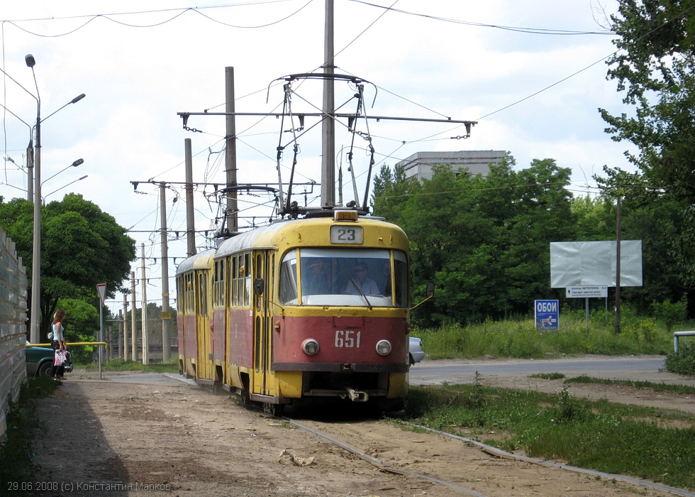 Tatra-T3SU #651-648 23-го маршрута на Московском проспекте возле станции метро "Имени А.С. Масельского"