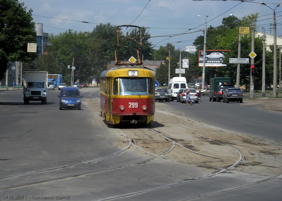 Tatra-T3SU #299 2-го маршрута на улице Котлова возле перекрестка с улицей Красноармейской