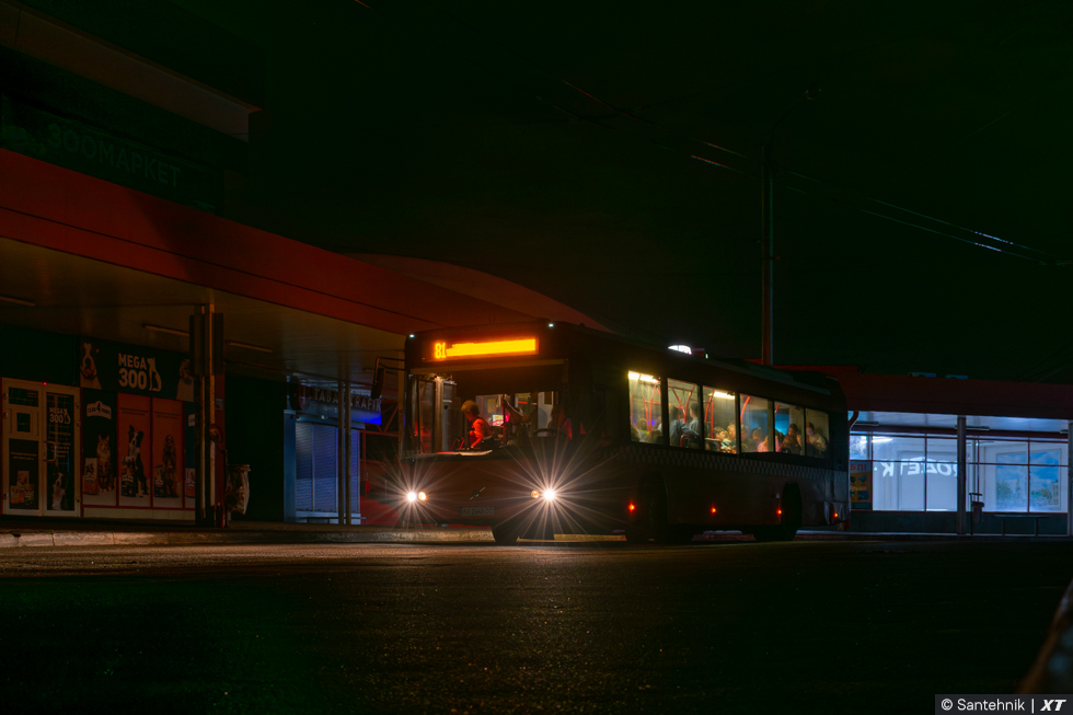 Атмосфера последнего рейса по маршруту. Освещение на одной из самых популярных конечных остановок города отсутствует...