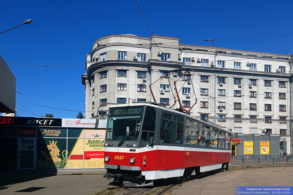 Tatra-T6A5 #4547 20-го маршрута прибыл на конечную "Вокзал "Харьков-Пассажирский"