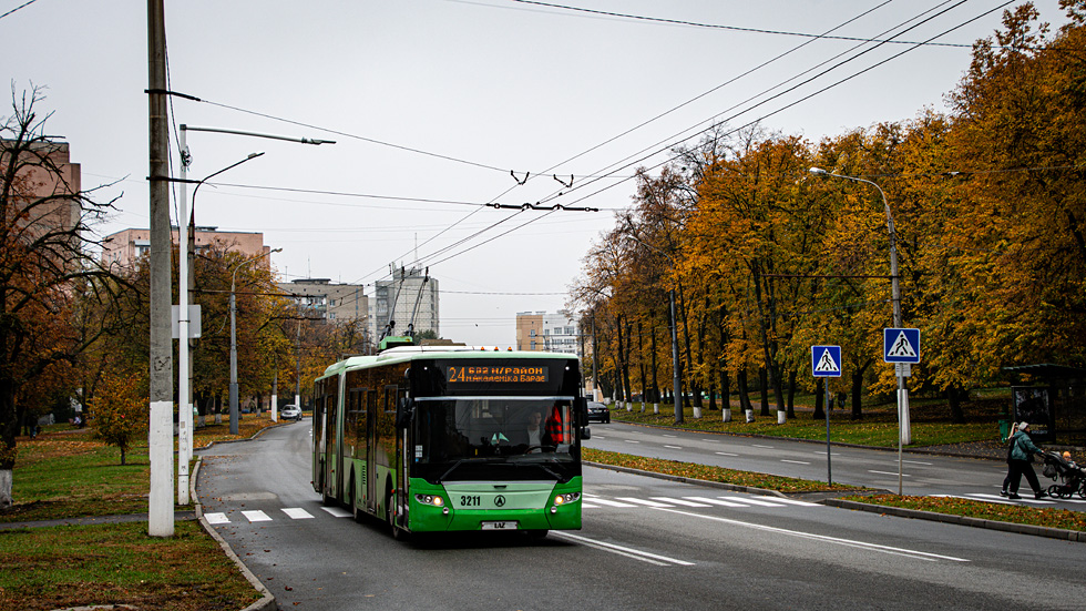 ЛАЗ-Е301D1 #3211 24-го маршрута на Юбилейном проспекте возле остановки "Салтовский РЭС"