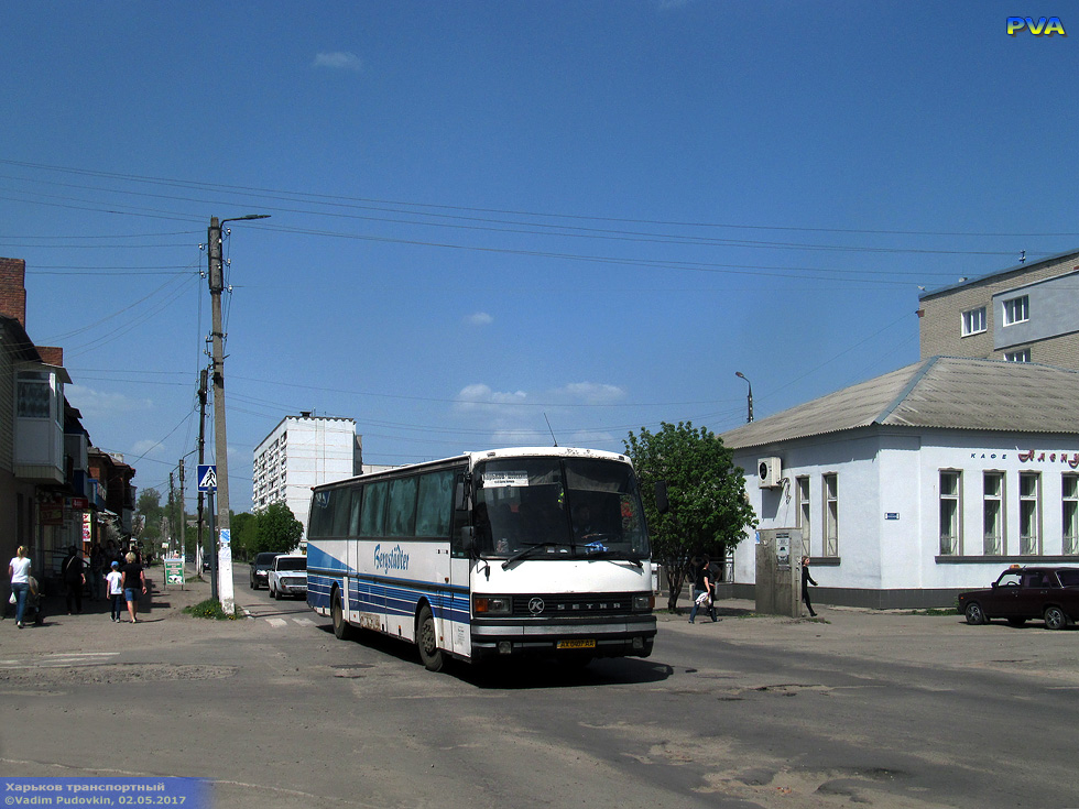 Setra S215HR гос.# AX0407AA маршрута Шебекино — Харьков в Волчанске на улице Соборной возле улицы Авиационной