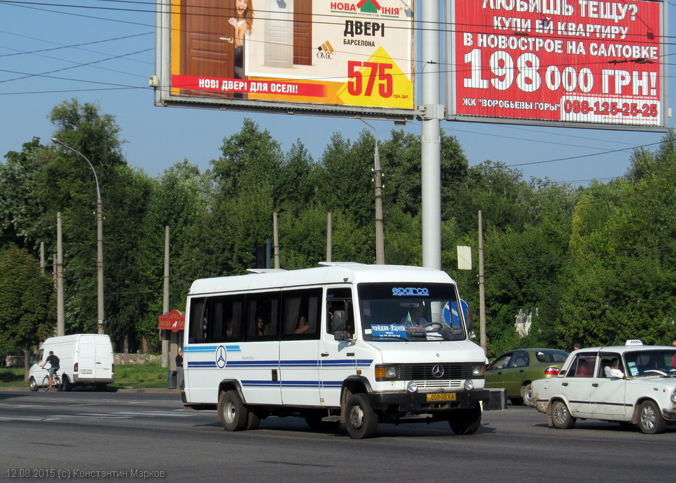 Mercedes-Benz 609D гос.# 009-45ХА маршрута Майдан - Харьков на улице Полтавский Шлях возле станции метро "Холодная Гора"