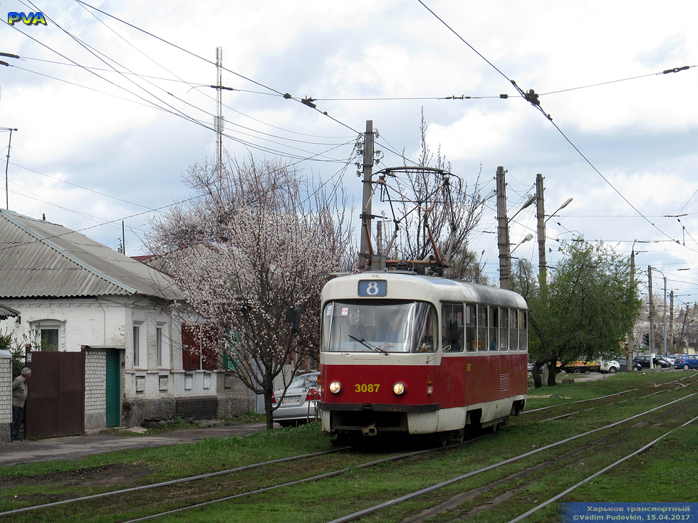 Tatra-T3SUCS #3087 8-го маршрута на улице Академика Павлова в районе улицы Семиградской