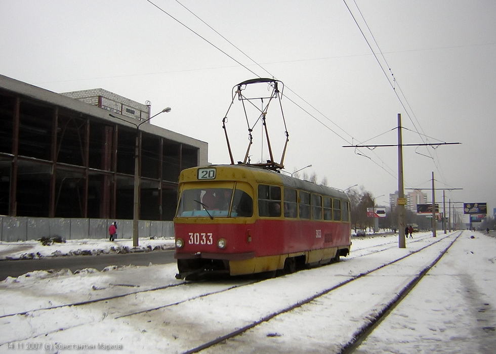 Tatra-T3SU #3033 20-го маршрута на проспекте Победы в районе перекрестка с проспектом Людвига Свободы