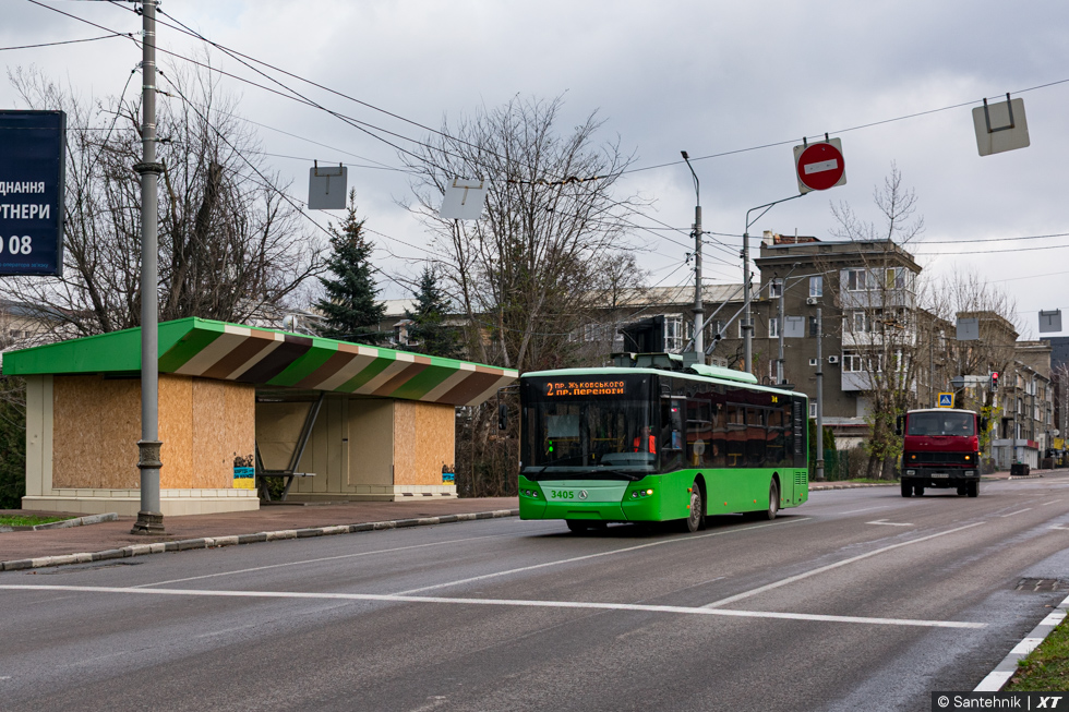 ЛАЗ-Е183А1 #3405 2-го маршрута на улице Академика Проскуры возле Харьковского шоссе