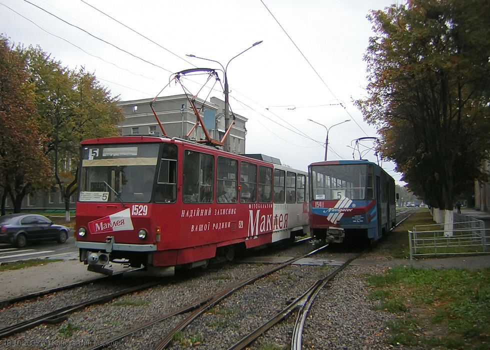 Tatra-T6B5 #1529 и #1541 5-го маршрута на улице Плехановской возле перекрестка с улицей Молодой Гвардии