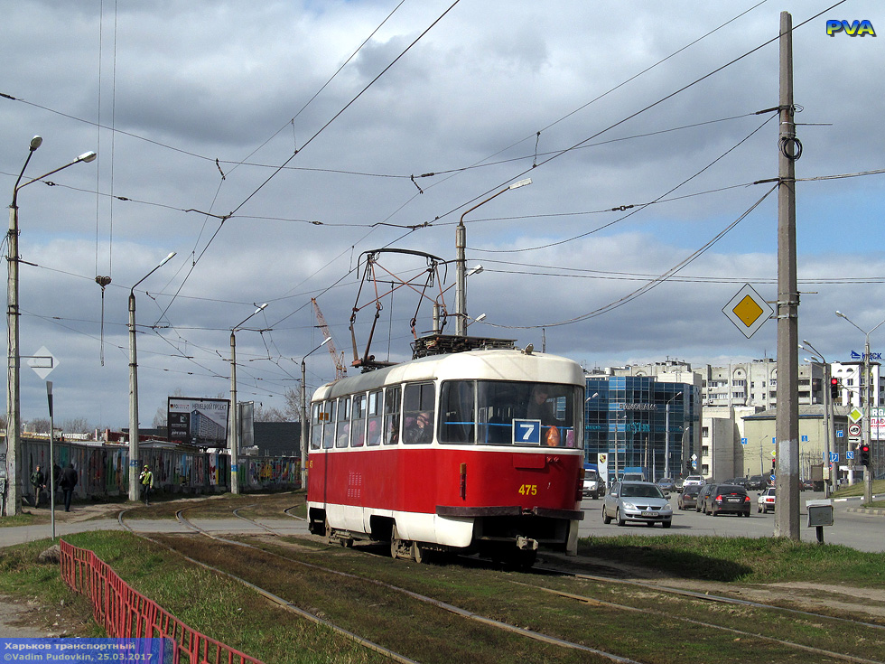 Tatra-T3A #475 7-го маршрута на улице Клочковской возле улицы Ивановской