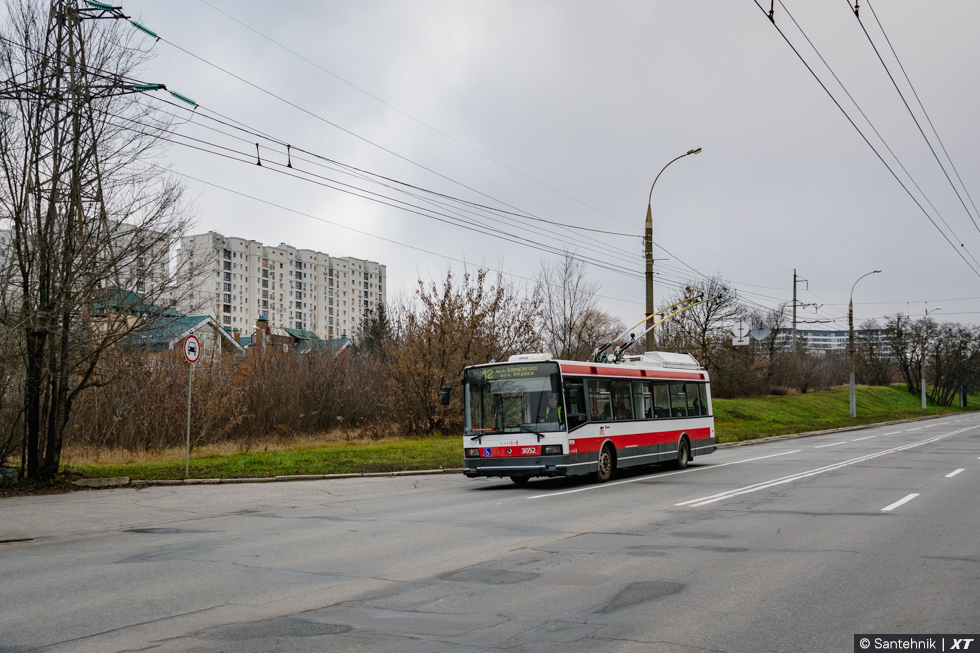 Škoda-21Tr #3052 12-го маршрута на улице Деревянко спускается к Саржинскому мосту