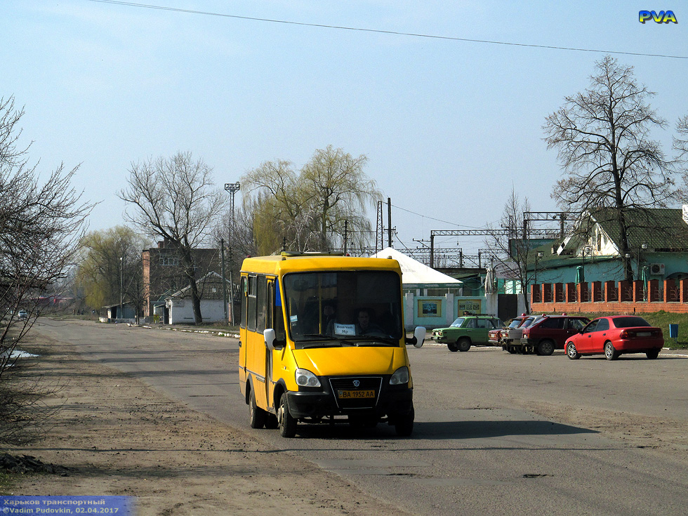 БАЗ-2215 гос.# ВА1952АА маршрута Балаклея — Волчий яр в Балаклее на улице 40 лет Победы возле железнодорожной станции