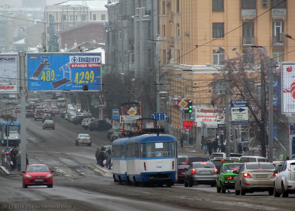Tatra-T3A #5145-5146 3-го маршрута на улице Полтавский Шлях возле перекрестка с улицей Красноармейской