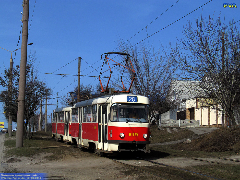 Tatra-T3SU #519-520 26-го маршрута на проспекте Тракторостроителей в районе улицы Петрозаводской
