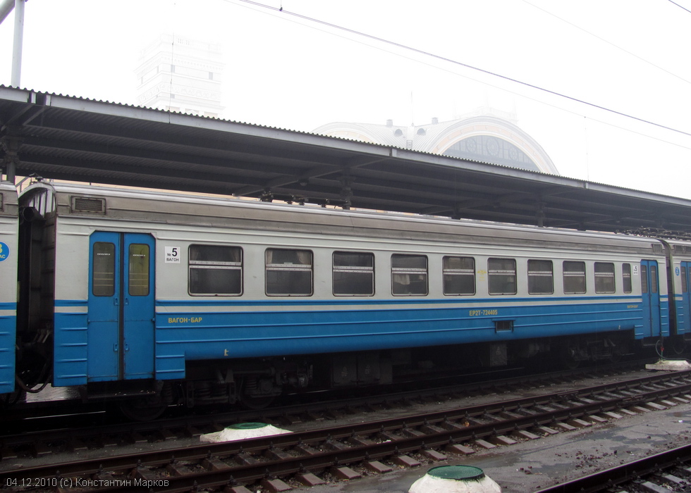 Вагон ЭР2Т-724405 (бар) в составе ЭР2Т-7244/7249 на станции Харьков-Пассажирский