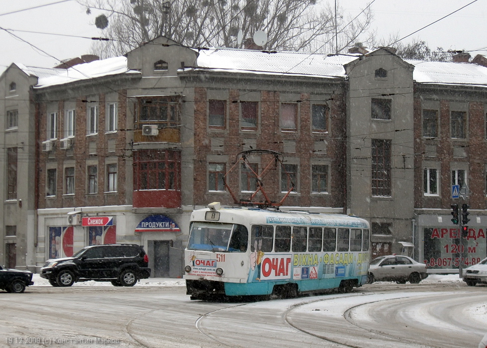 Tatra-T3SU #511 8-го маршрута на перекрестке улиц Кирова и Плехановской