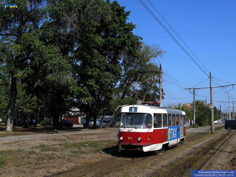 Tatra-T3SU #511 8-го маршрута на улице Шевченко возле улицы Карякинской