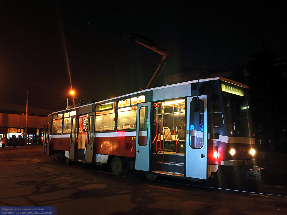 Tatra-T6A5 #8744 30-го маршрута на конечной "Вокзал "Харьков-Пассажирский"