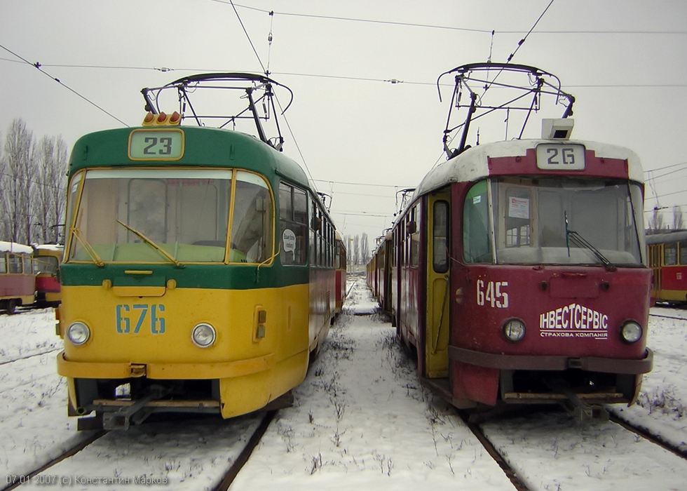 Tatra-T3SU #676-677 и #645-646 в Салтовском трамвайном депо