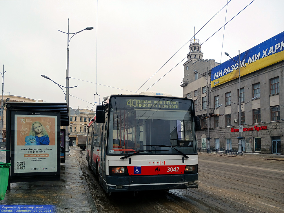 Škoda-21TrIGCT #3042 40-го маршрута в Ярмарочном переулке напротив улицы Квитки-Основьяненко