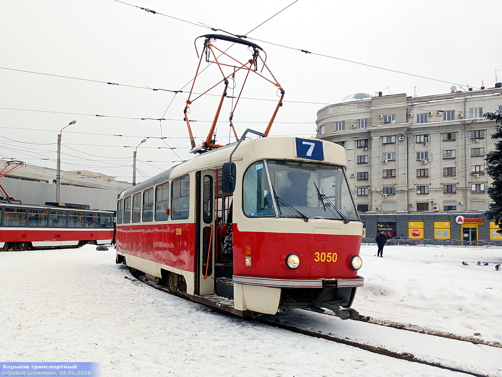 Tatra-T3SU #3050 7-го маршрута перед отправлением от конечной "Вокзал "Харьков-Пассажирский"