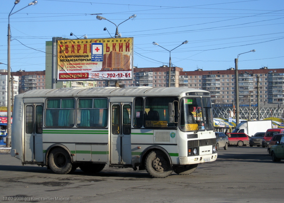 ПАЗ-32054-07 гос.# AX8026AA 268-го маршрута на перекрестке улиц Академика Павлова и Героев Труда