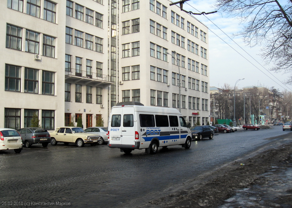 Mercedes-Benz Sprinter 316CDI гос.# АХ8180СА бесплатного маршрута "Ст. м. "Университет" - Супермаркет "Рост" на проспекте Ленина