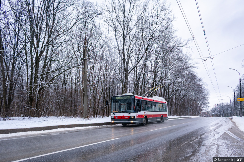 Škoda-21Tr #3020 40-го маршрута на улице Деревянко в окрестностях улицы Космонавтов