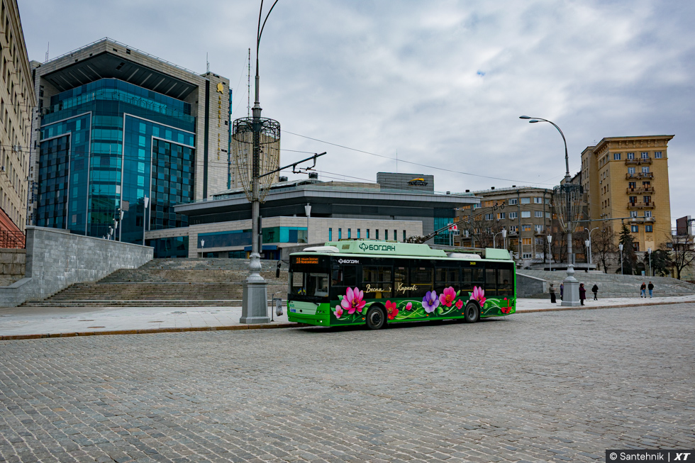 Богдан-Т70117 #3625 18-го маршрута на площади Свободы возле станции метро "Госпром"