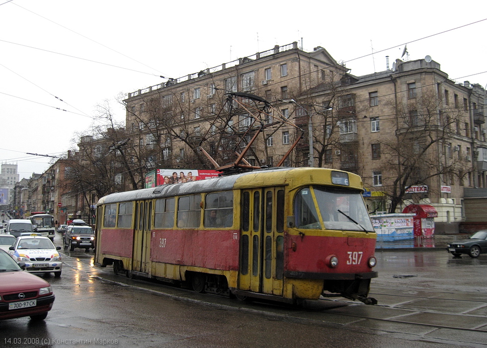 Tatra-T3SU #397 6-го маршрута на Московском проспекте возле Харьковского моста