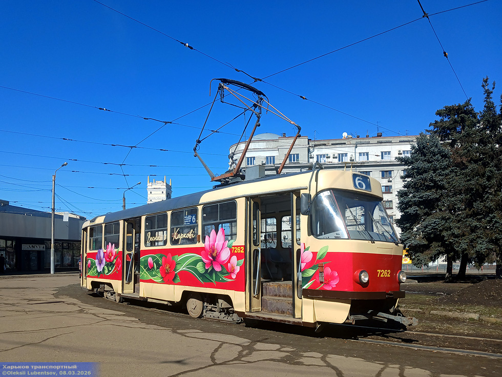 Tatra-T3SUCS #7262 6-го маршрута перед отправлением от конечной "Вокзал "Харьков-Пассажирский"