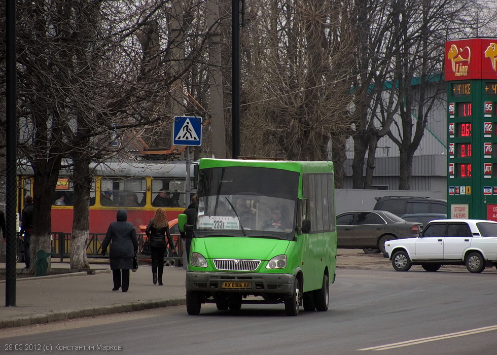 Рута-А048.4 гос.# АХ0306АА 233-го маршрута на улице Пушкинской возле перекрестка с улицей Веснина