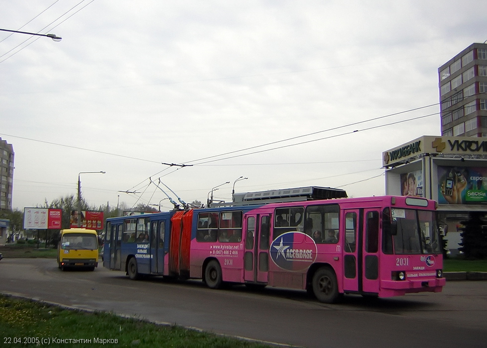 ЮМЗ-Т1 #2031 3-го маршрута на кольцевой развязке улицы Вернадского, Красношкольной набережной и улицы Гамарника