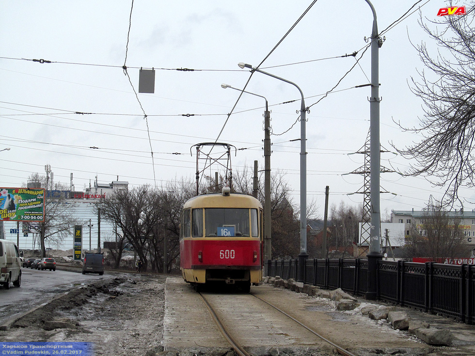 Tatra-T3SU #600 маршрута 16-А на улице Моисеевской следует по Моисеевскому мосту