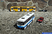 Хотелось бы посмотреть на фотографии Ваших моделей. Как обещал в теме «Ваши любимые единицы ПС», что бы не «оффтопить» в той теме, выкладываю фотографии моих моделей трамваев и троллейбусов в разных масштабах с кратким описанием. Приношу свои извинения администрации форума за столь большую статью, но сократить не получилось… Модель УКВЗ 71-605А (КТМ-5М3) выполнена в масштабе 1:20 – действующая: двигается, работают двери, рельсовые тормоза, звонок, при торможении включаются стоп-сигналы; действующая светотехника – освещение салона и кабины водителя, габаритные фонари, указатели поворота, фары. Питание – 24 В («+» - к контактному проводу, «-» - к рельсам). Делал её с 1988 по 1991 г. В прошлом году начал КВР (который обошёлся мне очень дорого - 1500 грн.), который только сейчас завершил. Пантограф – так же действующий, поднимается при помощи пружин Тележки поворачиваются, в каждой из них по 2 ТЭДа, 12В, соединённых последовательно. При отпускании ПБ или нажатии на кнопку экстренного тормоза включаются РТ и звенит звонок (при этом отключается питание ТЭДов). Бандажи на колёсах – съёмные, правда в запасе есть всего 2 шт. Все люки открываются, имеется доступ к электрооборудованию Сцепки рассчитаны на прицепление 2-го вагона, и электросхема до КВР предусматривала работу в СМЕ, но т.к. от изготовления ещё одного вагона пришлось отказаться (очень дорого), электросхему при проведении КВР решил так же не усложнять… Сидения в салоне обклеены дермантином, форточки в окнах открывающиеся. В кабине сидит кукла – водитель (левую руку удалось выгнуть над огнём, что бы держала рукоятку контроллера). На приборной панели светятся по необходимости светодиоды (соленоиды, фары, поворот, индикаторы положения дверей переключаются в зависимости от положения дверей – открыто/закрыто). |