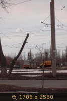 4557 сошел с рельсов (как минимум час назад) на повороте с Салтовского Шоссе на Тракторостроителей, по пути в депо. Близко не подходил, но издалека похоже на то, что задняя колесная пара укатилась влево. Фото: