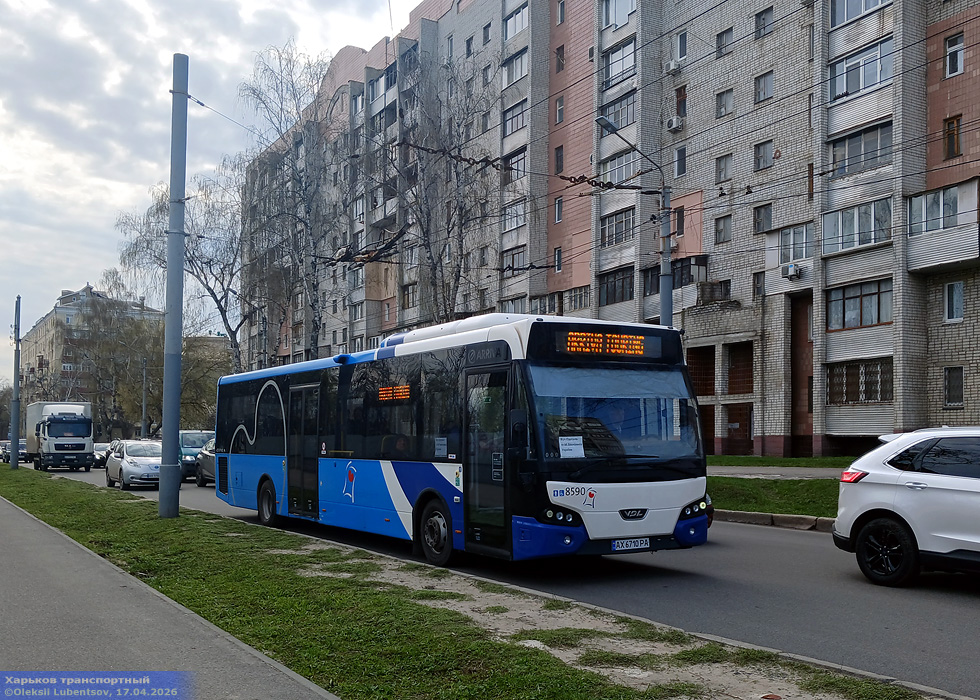 VDL Citea LLE-120 гос.# АХ6710РА временного маршрута "Станция метро "Защитников Украины" — Улица Одесская" на улице Олега Громадского в районе улицы Теробороновской