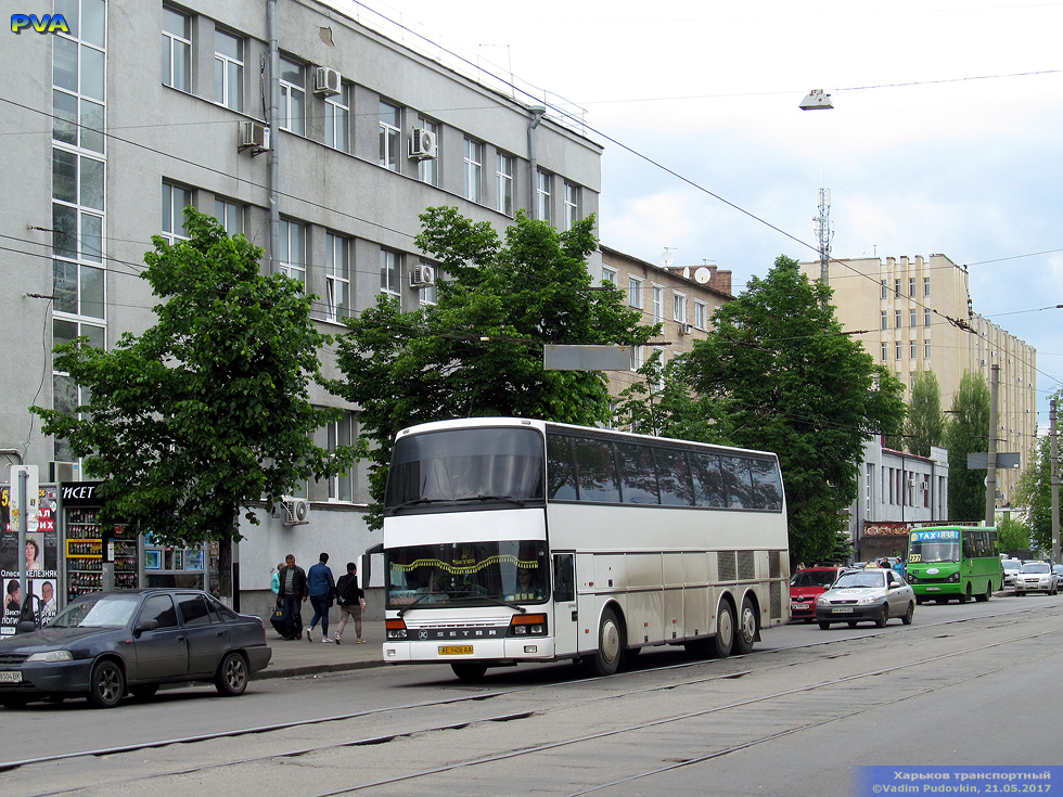 Setra S316HDS гос.# АЕ9408АА маршрута Харьков — Днипро на улице Евгения Котляра в районе Привокзальной площади